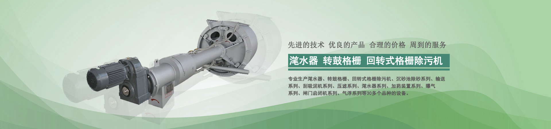 本公司目前專業(yè)生產(chǎn)轉(zhuǎn)鼓式精密過濾器、轉(zhuǎn)鼓格柵、回轉(zhuǎn)式格柵除污機、沉砂池除砂系列、輸送系列、刮吸泥機系列、壓濾系列、潷水器系列、加藥裝置系列、曝氣系列、閘門啟閉機系列、氣浮系列、曝氣器系列、填料系列等30多個品種的設備...